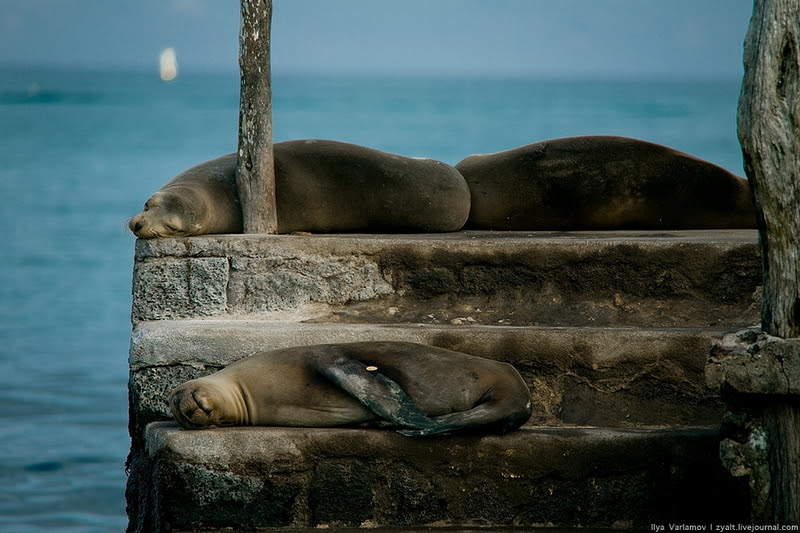 A sea lion is one of the main attractions of the Galapagos Islands. They behave very impertinently as they are not afraid of anybody. They terrorize all the animals on the island: pelicans, dogs and many others are really afraid of them.